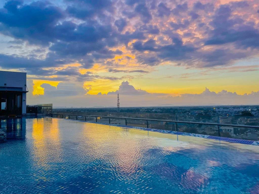 Không gian thư giãn lý tưởng, tầm nhìn thoáng đãng – nơi bạn có thể vừa ngâm mình trong làn nước mát, vừa chiêm ngưỡng cảnh biển Sầm Sơn từ trên cao. Đây là điểm check-in rất được lòng du khách.